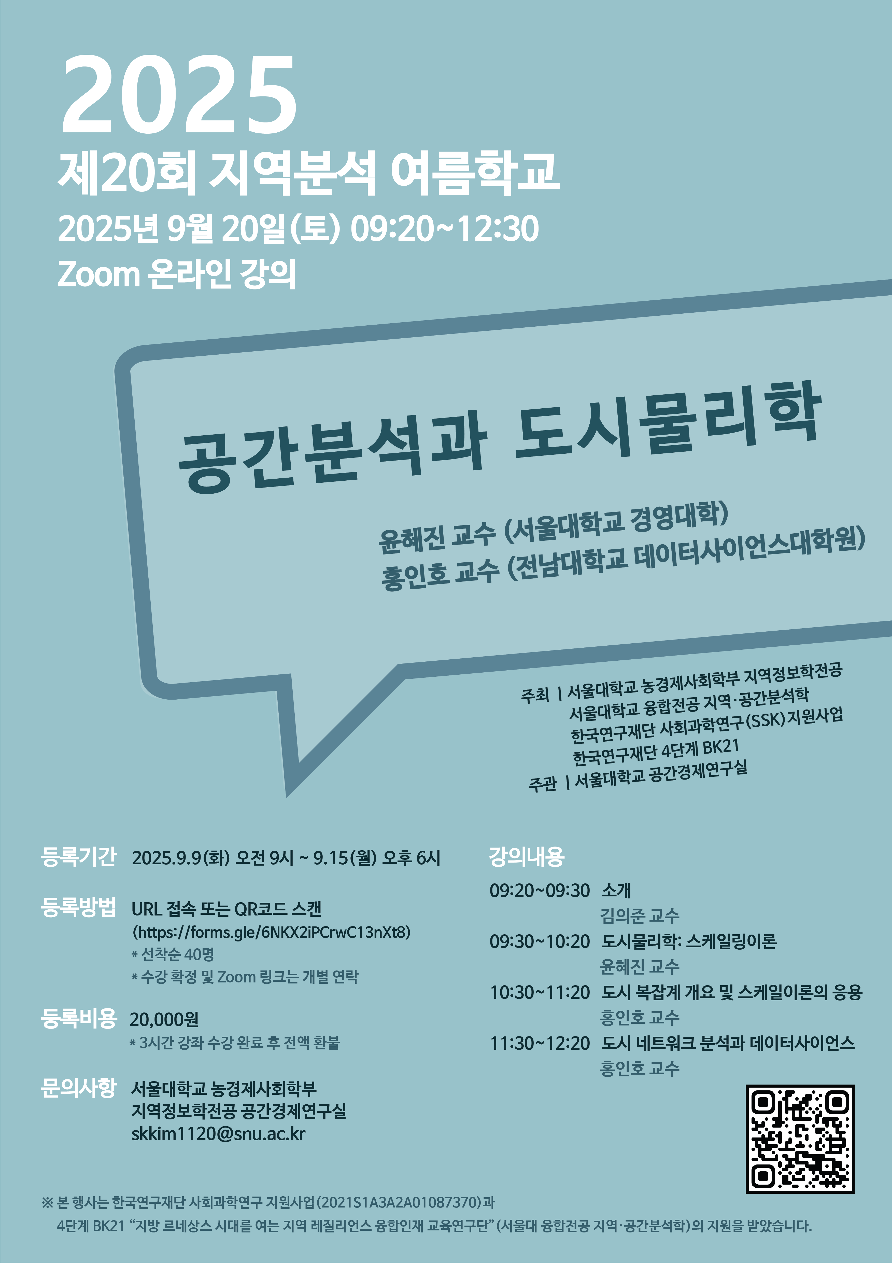 2. 일시: 2025년 9월 20일(토) 09:20 ~ 12:30 (Zoom 온라인 강의)